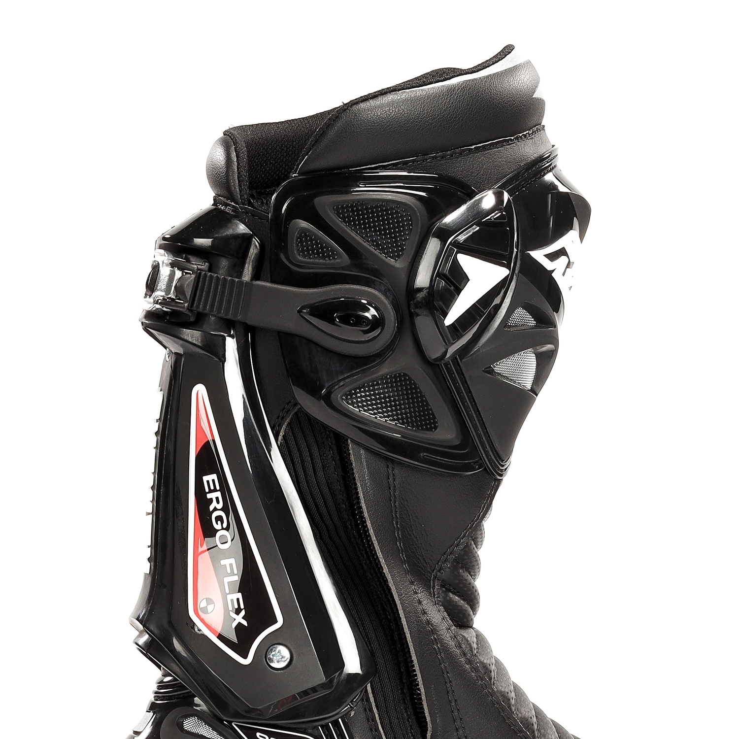 Su diseño ergonómico, con amplias zonas de flexión delanteras y traseras, permite un movimiento natural del pie, mejorando el control sobre la moto en cada curva. El interior, reforzado y ventilado, mantiene el confort incluso en trayectos largos o en conducción exigente.